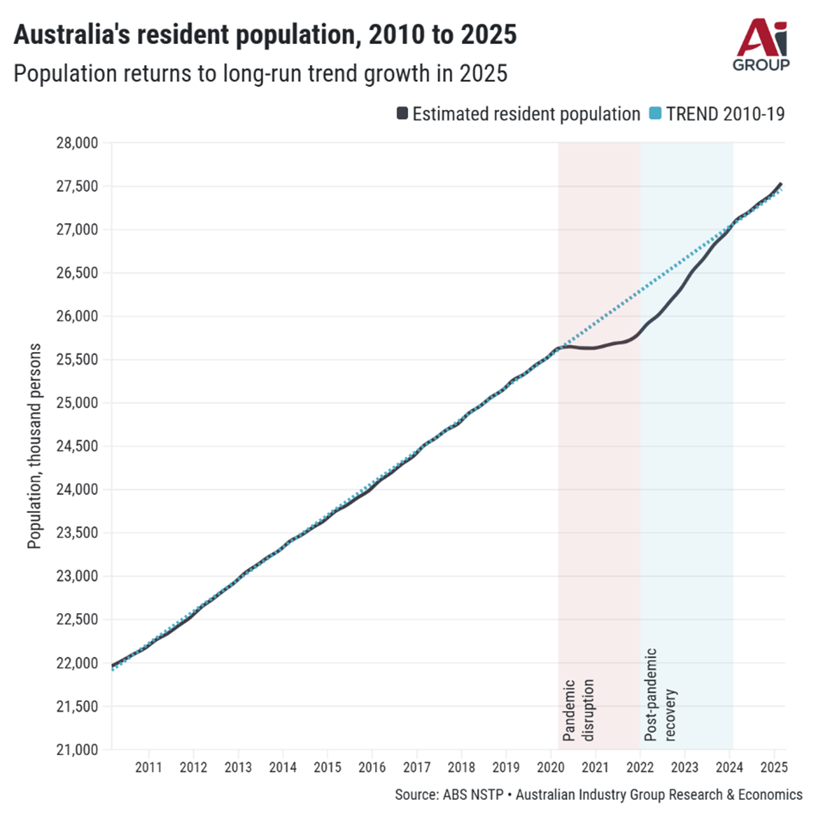 "In the first quarter of 2025, Australia's resident population of 27.5 million people was only 0.27% higher than expected given our long-run trend.